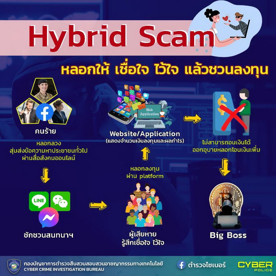 “หลอกให้เชื่อใจ ไว้ใจ แล้วชักชวนลงทุน” … Hybrid Scam
