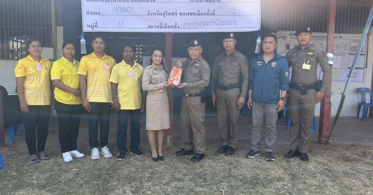 วันที่ 1 ก.พ.2568 เวลา 13:10 น. พ.ต.อ.สมยศ พื้นชัยภูมิ ผกก.สภ.จอมพระ ได้มาตรวจเยี่ยมการเลือกตั้งสมาชิกสภาองค์การบริหารส่วนจังหวัดสุรินทร์ หน่วยเลือกตั้งที่ 11 ณ ศาลาประชาคมบ้านโนนกลาง หมู่ที่ 11 ต.บ้านผือ อ.จอมพระ จ.สุรินทร์