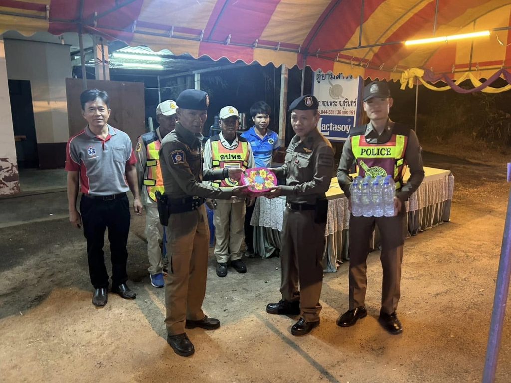 วันนี้ 27 ธ.ค. 2567 เวลาประมาณ 18:30 น.พ.ต.อ.สมยศ พื้นชัยภูมิ ผู้กำกับสถานีตำรวจภูธรจอมพระ ได้ออกตรวจเยี่ยมจุดบริการประชาชนในช่วงเทศกาลปีใหม่ 2568 ณ บริเวณตู้ยามสำโรง พบเจ้าหน้าที่ตำรวจ เจ้าหน้าทีสาธารณะสุข, อปพร. อยู่ปฏิบัติหน้าที่ ได้นำเครื่องดื่ม ขนม มอบให้กับเจ้าหน้าที่ฯ ประจำจุดบริการประชาชน พร้อมได้กำชับการปฏิบัติหน้าที่อย่างเข้มแข็ง เพื่อให้เกิดความปลอดภัยแก่พี่น้องประชาชนที่สัญจรไปมาในช่วงเทศกาลปีใหม่