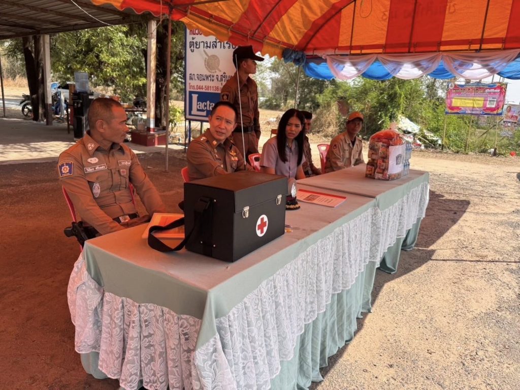 วันที่ 15 เม.ย. 68 เวลาประมาณ 14:30 น. พ.ต.อ.วีระพันธ์ ณ ลำปาง รอง ผบก.ภ.จว.สุรินทร์ ได้เดินทางมาตรวจเยี่ยมจุดตรวจ จุดบริการประชาชนในช่วงเทศกาลสงกรานต์ พ.ศ.2568 ณ บริเวณหน้าตู้ยามสำโรง ทางหลวงหมายเลข 214 ต.หนองสนิท อ.จอมพระ จ.สุรินทร์ ในช่วงเทศกาลสงกรานต์ พ.ศ.2568 พบ ร.ต.อ.วิเชียร ศรีเพชร รอง สว.จร.สภ.จอมพระ พร้อมด้วยข้าราชการตำรวจ อปพร. จนท.สาธารณสุข อยู่ปฏิบัติหน้าที่ พร้อมได้มอบอาหาร เครื่องดื่ม แก่เจ้าหน้าที่ตำรวจเพื่อเป็นขวัญกำลังใจ ได้กำชับให้อำนวยความสะดวก บริการดูแลความปลอดภัยแก่ประชาชนผู้ใช้รถใช้ถนน และบังคับใช้กฎหมายจราจรอย่างเคร่งครัด เหตุการณ์ทั่วไปปกติ