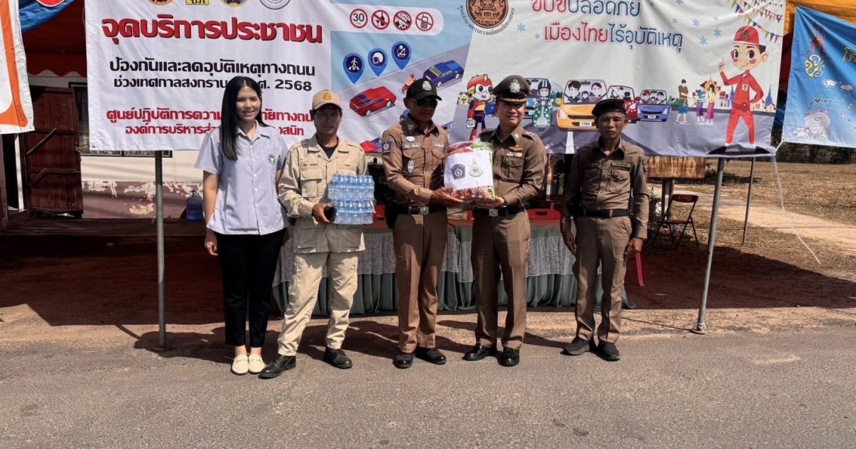 วันที่ 15 เม.ย. 68 เวลาประมาณ 14:30 น. พ.ต.อ.วีระพันธ์ ณ ลำปาง รอง ผบก.ภ.จว.สุรินทร์ ได้เดินทางมาตรวจเยี่ยมจุดตรวจ จุดบริการประชาชนในช่วงเทศกาลสงกรานต์ พ.ศ.2568 ณ บริเวณหน้าตู้ยามสำโรง ทางหลวงหมายเลข 214 ต.หนองสนิท อ.จอมพระ จ.สุรินทร์ ในช่วงเทศกาลสงกรานต์ พ.ศ.2568 พบ ร.ต.อ.วิเชียร ศรีเพชร รอง สว.จร.สภ.จอมพระ พร้อมด้วยข้าราชการตำรวจ อปพร. จนท.สาธารณสุข อยู่ปฏิบัติหน้าที่ พร้อมได้มอบอาหาร เครื่องดื่ม แก่เจ้าหน้าที่ตำรวจเพื่อเป็นขวัญกำลังใจ ได้กำชับให้อำนวยความสะดวก บริการดูแลความปลอดภัยแก่ประชาชนผู้ใช้รถใช้ถนน และบังคับใช้กฎหมายจราจรอย่างเคร่งครัด เหตุการณ์ทั่วไปปกติ