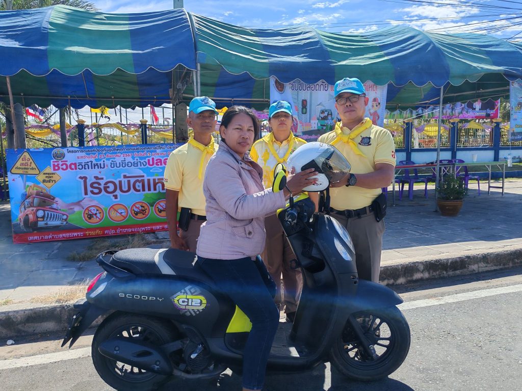 วันที่ 28 ธ.ค.67 เวลา 09.00 น.พ.ต.อ.สมยศ พื้นชัยภูมิ ผกก.สภ.จอมพระ พร้อมด้วยชุดจิตอาสา สภ.จอมพระ จำนวน 4 นาย จนท. สาธารณสุข 3 คน, อปพร. 2 นาย ,ฝ่ายปกครอง 5 คน, อสม. 5 คน ปฏิบัติหน้าที่ให้บริการประชาชนอำนวยความสะดวกด้านการจราจร ประชาสัมพันธ์อบรมให้ความรู้กฎจราจรที่ควรรู้ ความรู้เรื่องหมวกนิรภัยเมาไม่ขับ และ มอบหมวกนิรภัยตามโครงการจิตอาสาจราจรรณรงค์การขับขี่ปลอดภัย สวมหมวกนิรภัย เพื่อลดอุบัติเตุจราจรทางบกในช่วงเทศกาลปีใหม่ พ.ศ.2568 ณ จุดบริการประชาชนตู้ยามสำโรง ต.หนองสนิท อ.จอมพระ จว.สุรินทร์